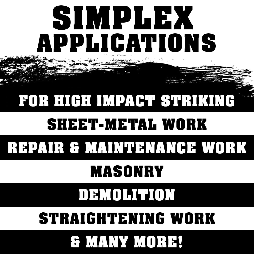 The SIMPLEX series 3709 is equipped with the soft metal insert on either side. Made of aluminum, the silver insert (series 3209) is hard, heat-resistant, and a replacement for a classic lead hammer. The black, reinforced cast steel housing provides for greater stability thanks to the enlarged wall thicknesses and struts. The increase in weight ensures greater impact force. Extremely rugged and durable, the fiberglass handle offers exceptional break resistance. It is shaped ergonomically and includes a non-slip handle. It possesses a smooth surface and is inorganic (non-sensitive to moisture). In line with the smart SIMPLEX principle, all components are replaceable and can be retrofitted. This translates to savings in both money and resources.