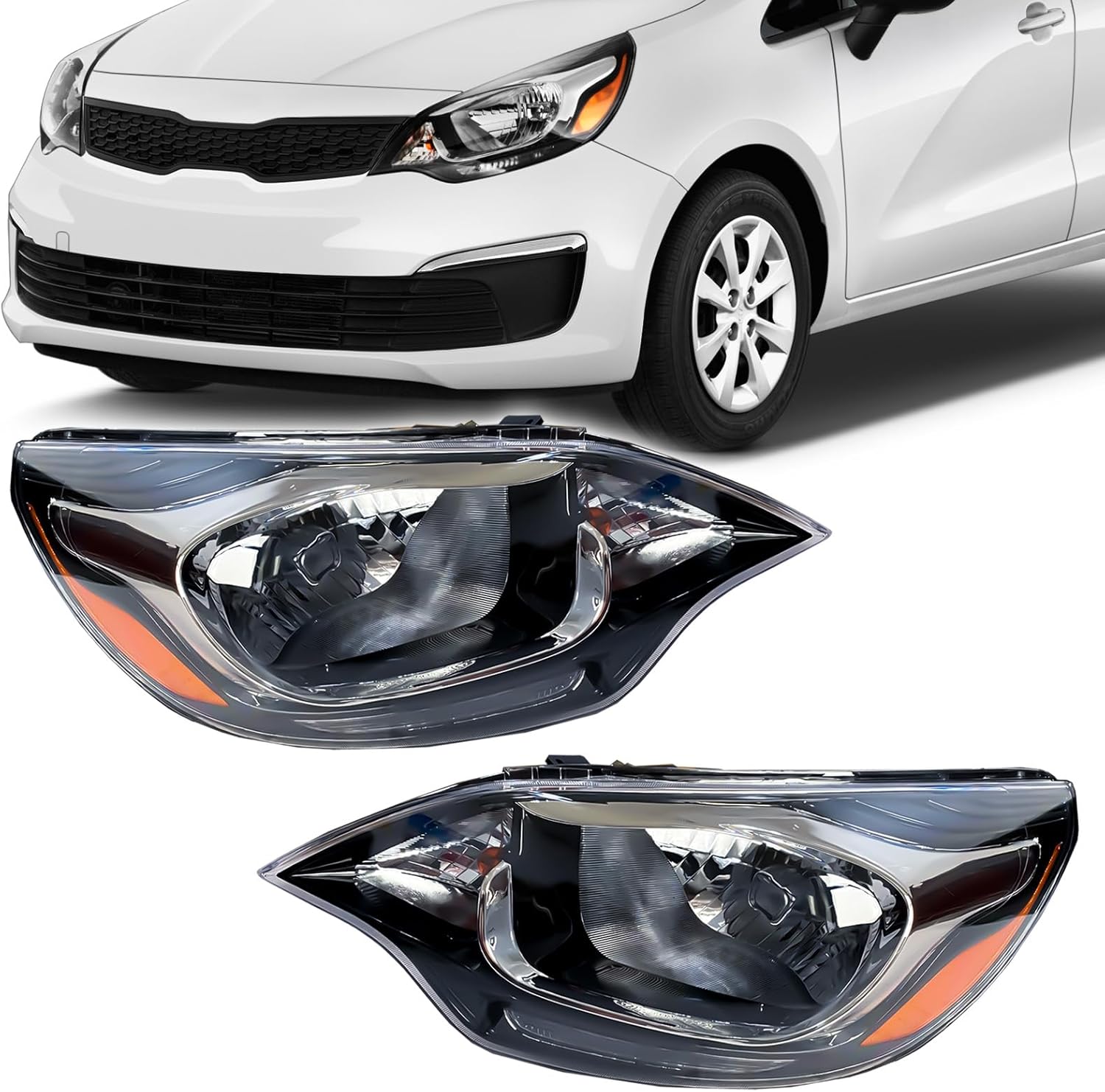 Headlight Assembly Compatible with 2012-2017 Kia Rio w/Bulbs Halogen Headlamp