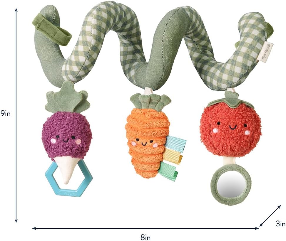 Travels abound! Endless adventures await with your babe’s new travel tagalong, the Itzy Bitzy Spiral from our Bitzy Bespoke collection! Watch as your babe reaches for the dangling ring, smiles at their reflection in the hanging mirror, and grasps for the ribbons keeping their little hands busy. Our natural cotton fabrics are gentle & soft to baby’s touch. For the many travels ahead, easily attach the Itzy Bitzy Spiral to car seats and strollers for fun on the go! Whether it's a quick stroll or a long car ride, this travel tagalong promises endless entertainment for your little explorer. Immerse your baby in a world of sensory delight. The carefully curated design of the Itzy Bitzy Spiral encourages tactile exploration, visual engagement, and auditory stimulation, fostering crucial developmental milestones. The combination of the soft, textured fabrics and interactive elements makes this tagalong not just a source of entertainment but a valuable tool for your baby's growth and discovery. Elevate every journey with the perfect blend of fun and learning!