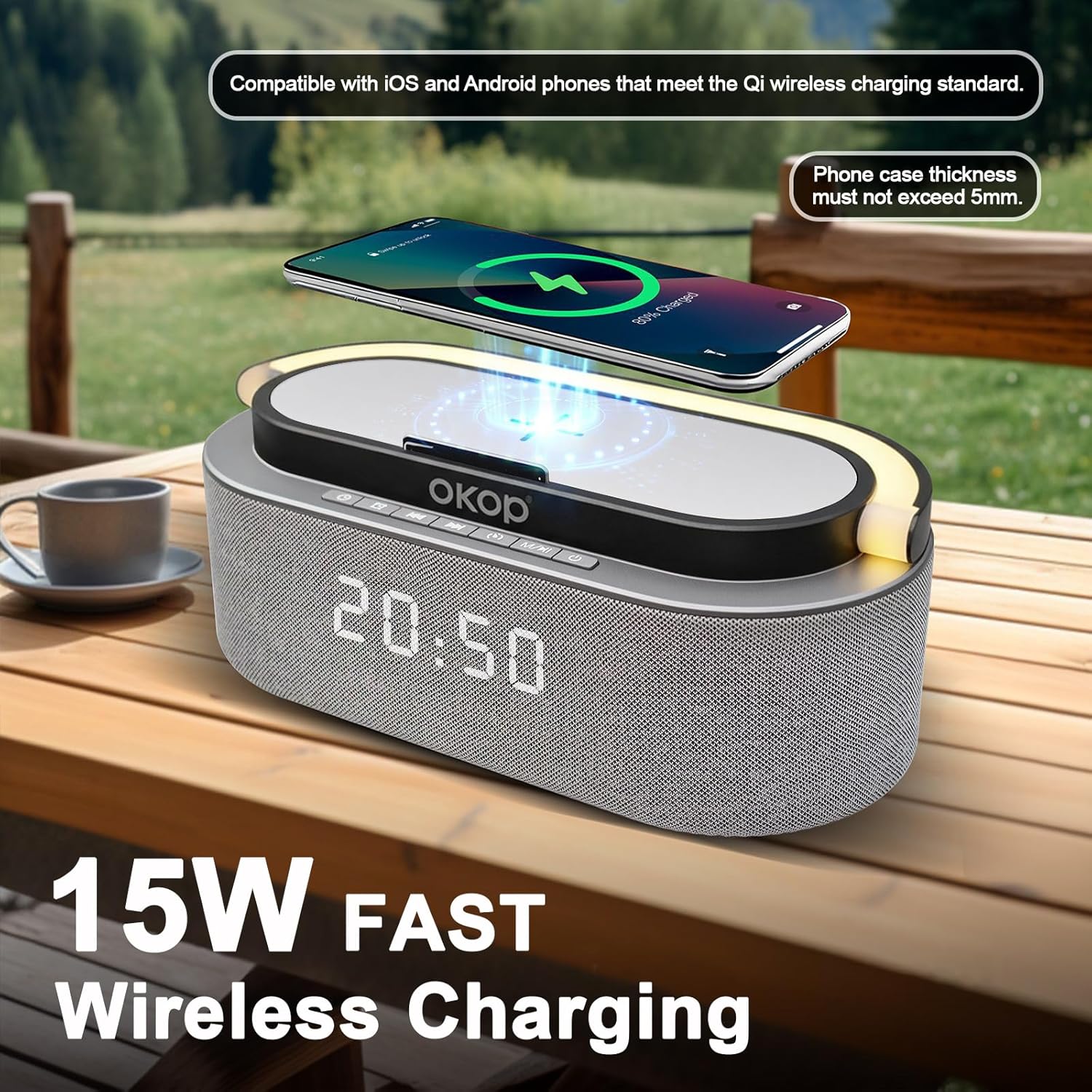 Your All-in-One Audio & Ambiance CompanionMeet the ultimate fusion of powerful sound and smart functionality. This Multifunctional Portable Bluetooth Speaker redefines convenienceby integrating immersive 10W HIFI audio, a fast 15W wireless charger, dynamic RGB mood lighting, and practical time-management tools into one sleek, handheld device. Designed for the modern lifestyle, it seamlessly enhances your momentsfrom focus and relaxation at home to entertainment on the goeliminating clutter and delivering a rich, multi-sensory experience.Product Specifications:Product Dimensions: 23.5 x 11 x 8.5 cm / 9.2 x 4.3 x 3.3 inchProduct Weight: 867 g / 1.91 lbBluetooth Version: 5.3Output Power: 10W (4Ω 5W x 2)Wireless Charging Power: 15W (Qi Standard)Battery Capacity: 1200mAhPlaytime: 3-6 HoursCharging Time: 2-3 Hours (via USB)Wireless Range: 10 m / 33 ftAudio Inputs: Bluetooth, TF Card, AUX, USBMaterial: ABSPackage Includes:Portable Bluetooth Speaker x 1USB Charging Cable x 1User Manual x 1Upgrade your daily routine with smart convenience and captivating sound. Whether it's for your desk, your bedside, or your next adventure,this 4-in-1 speaker is the versatile present that delivers exceptional valueand elevates every moment.