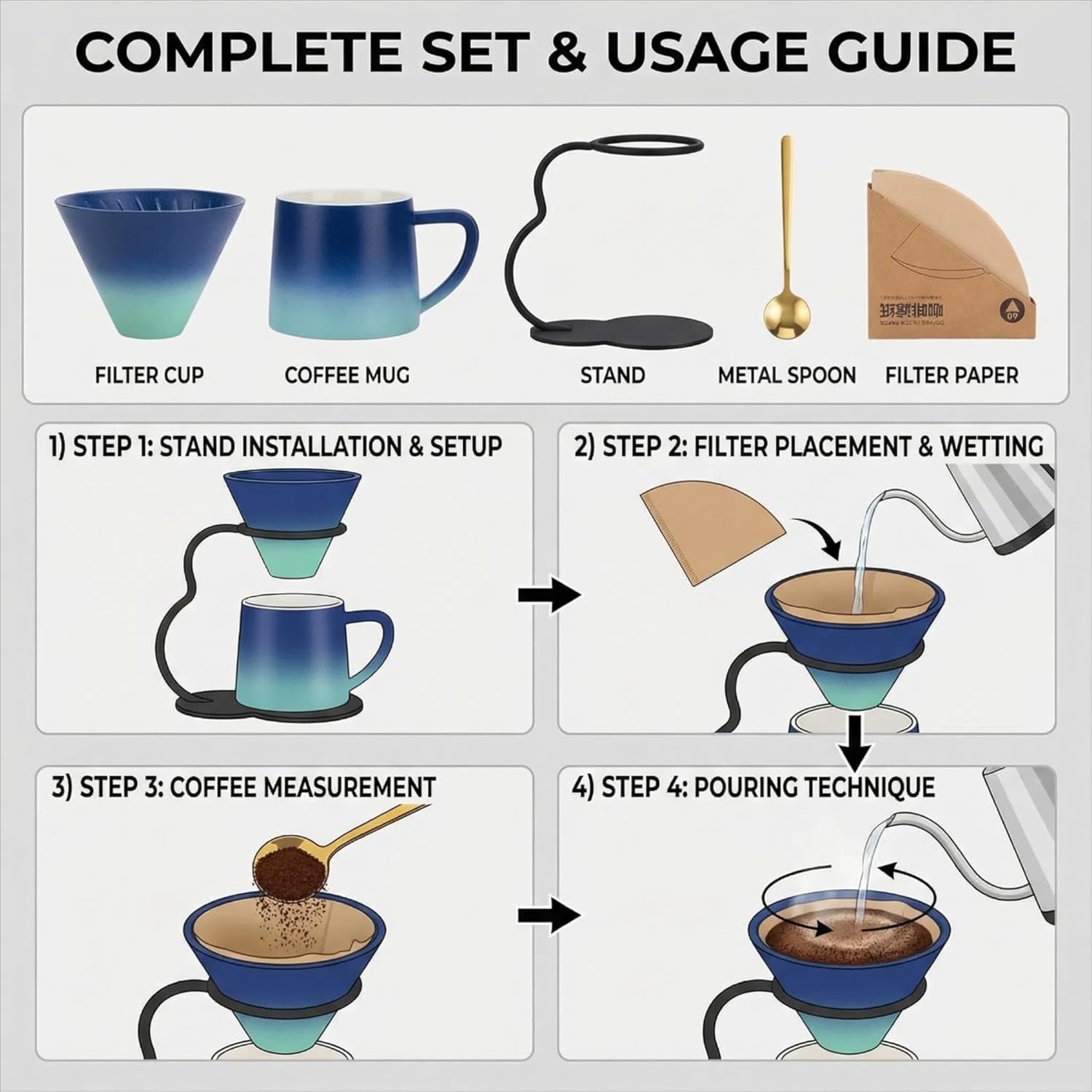 | Included Components | Ceramic Coffee Maker, V60 Paper Filters, Metal Stand |