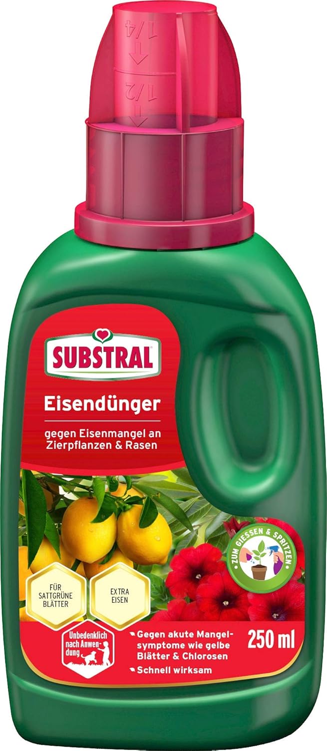 Rejuvenate your lawn and turf with Substral's Iron Fertiliser Green, a high-quality liquid fertilizer designed to prevent and correct iron deficiency in various plants. This 2-litre bottle, weighing 320 grams, offers extensive coverage for lawns and turf grasses, ensuring lush, green growth. The fertilizer's liquid form allows for easy application and quick absorption, providing essential nutrients for a healthy and vibrant garden.