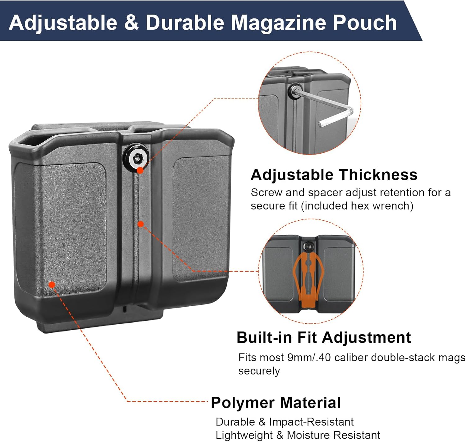 | Included Components | 9mm/.40 Double Stack Mags Pouch, Allen Wrench |